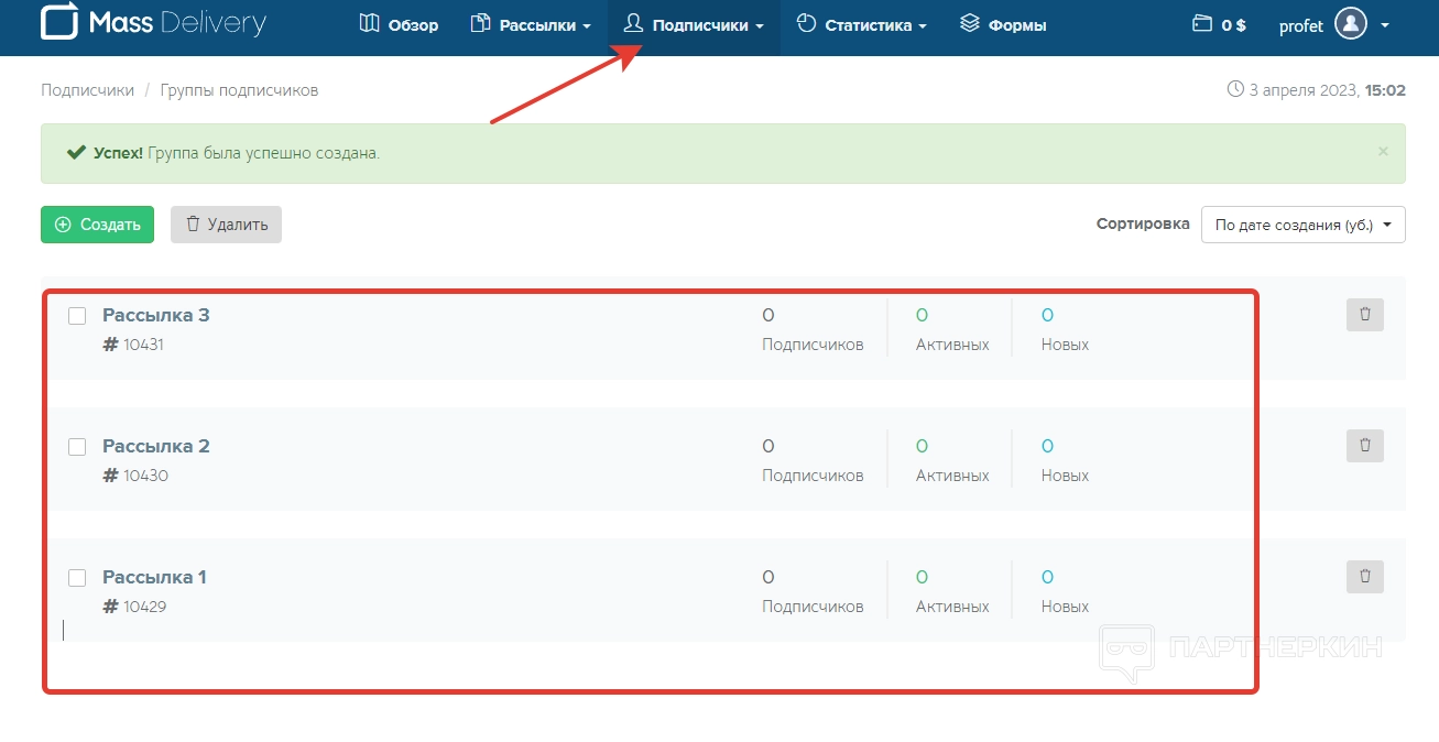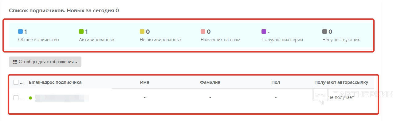 В следующем блоке отображается список подписчиков, разделенных по следующим параметрам: