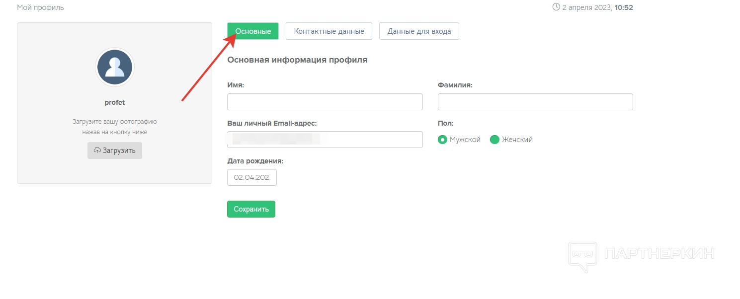 После регистрации откроется страница, где нужно будет заполнить данные профиля. В первой вкладке указываем имя, фамилию, пол и дату рождения. Тут же можно загрузить аватар.