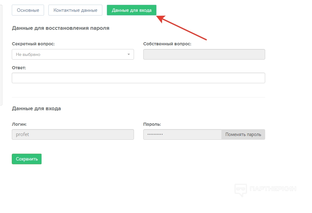 Во вкладке «Данные для входа» указываем секретный вопрос и ответ. В дальнейшем это поможет восстановить доступ к аккаунту.