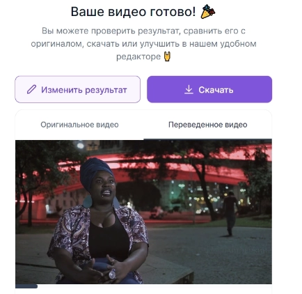 Ролик на выходе будет полностью на указанном языке, при этом исходный определяется автоматически. Например, в качестве примера мы перевели видео на русский язык — перевод получился достаточно сносным и понятным. Озвучивает его роботизированный голос, причем отчасти сохраняется тональность и интонация.