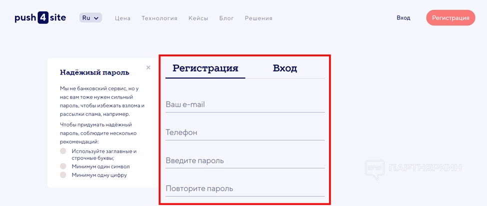- Заполните форму. Укажите e-mail, номер телефона (не обязательно), придумайте пароль.