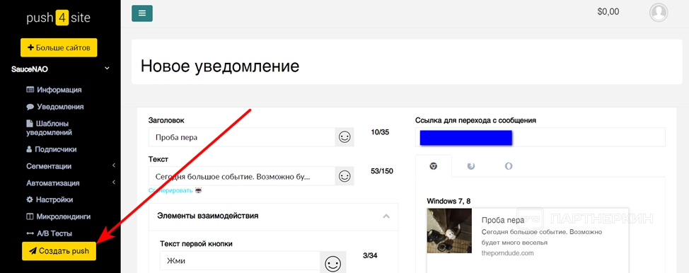 — это сервис, который выполняет рассылку Push-уведомлений. Услуга доступна для браузеров и смартфонов. Сообщения приходят пользователям даже при выключенном устройстве. Функционал сервиса открывает много возможностей. Например, вернуть клиента на сайт, увеличить продажи и повысить лояльность ЦА.