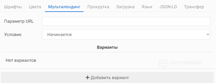 Мультилендинг . Тут можно добавить параметр URL и настроить условие. В выпадающем списке доступны следующие опции: