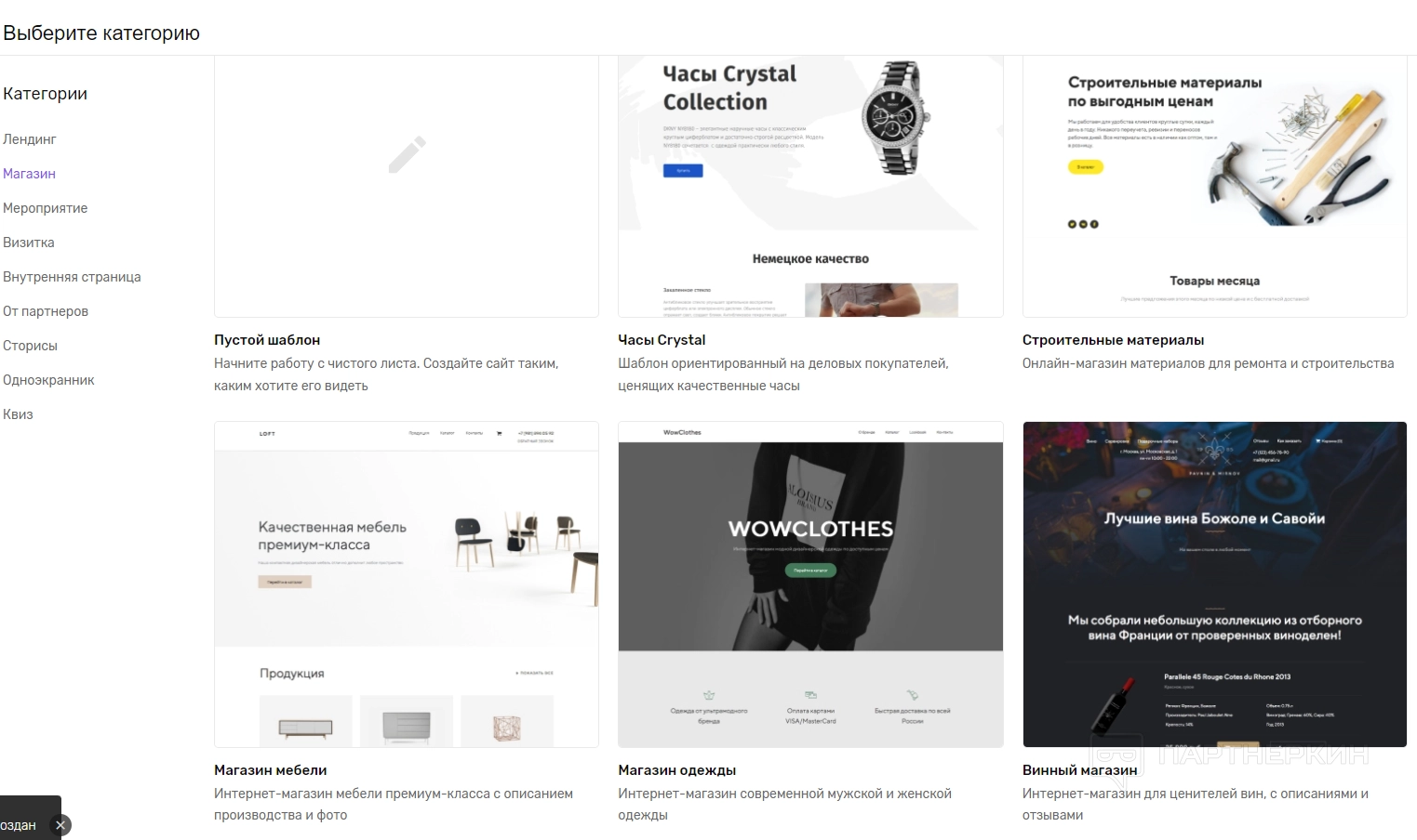 Откроется страница, где пользователю нужно прикрепить ссылку на сайт и выбрать категорию: бизнес, магазин, сервис, портфолио, стори-сайт, nocode, другой вариант.