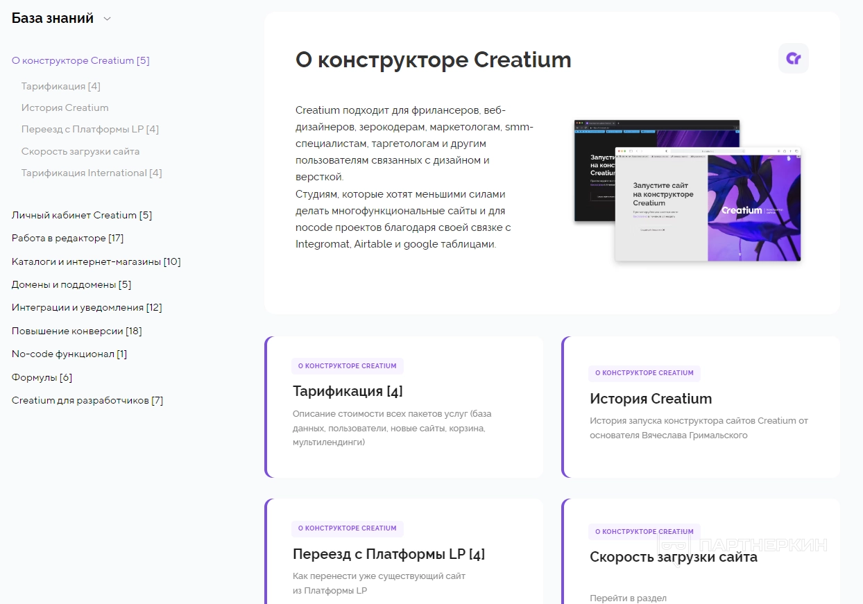 Конструктор Creatinum использует язык разметки Markdown. Он создан с целью обозначения форматирования в простом тексте, с максимальным сохранением его читаемости человеком. Поддерживает заголовки, списки, ссылки, картинки, цитаты и таблицы.