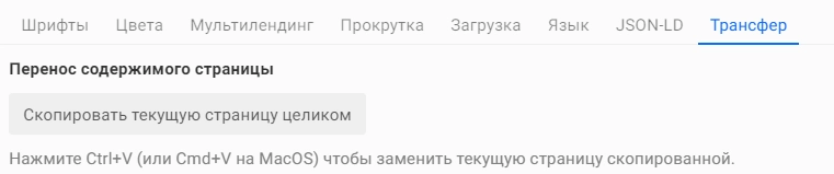 Трансфер . Перенос содержимого страницы. Чтобы заменить текущую страницу скопированной, необходимо нажать Ctrl+V (или Cmd+V на macOS).
