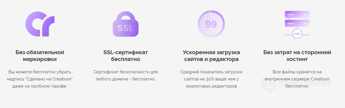 Creatiumпоможет продвинуть сайт на топовые позиции в поисковых системах. В редактор включен необходимый функционал: мета-теги, ключевые фразы, теги H1-H1 и alt, автоматическая генерация robots и sitemap.