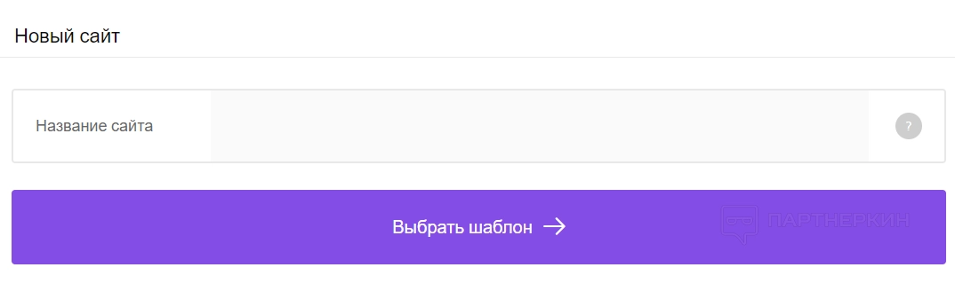 После регистрации пользователя перенаправит в раздел «Новый сайт». Здесь нужно указать название сайта (в будущем его можно переименовать) и перейти к пункту «Выбрать шаблон».
