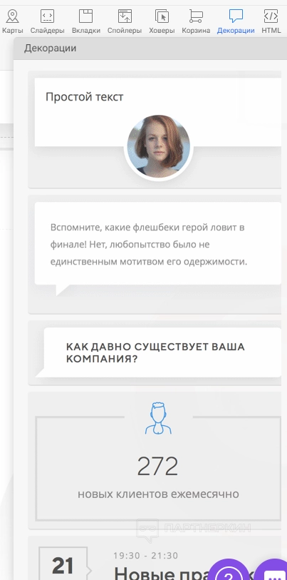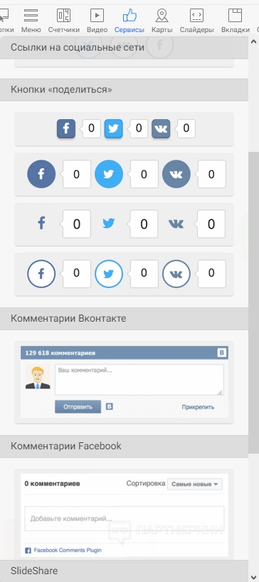 Creatiumможет интегрировать плагины, скрипты и внешние сервисы на сайт.
