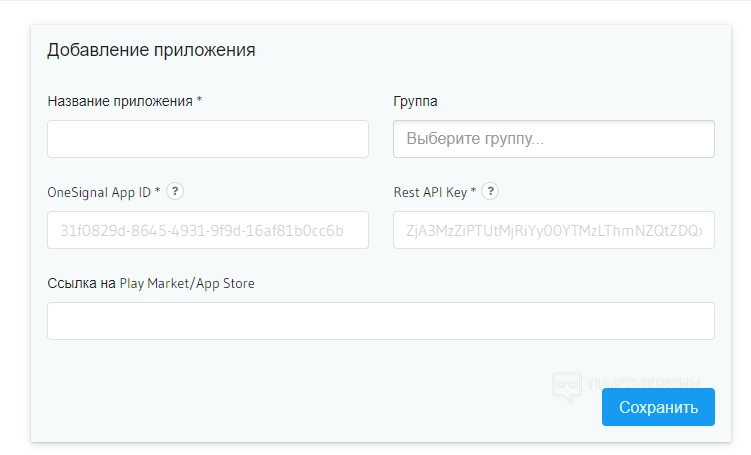 Первый раздел — «Мои приложения». Здесь можно добавлять свои приложения и сортировать их по группам. Чтобы добавить приложение, жмем на кнопку «Добавить приложение», расположенную в верхней части экрана.