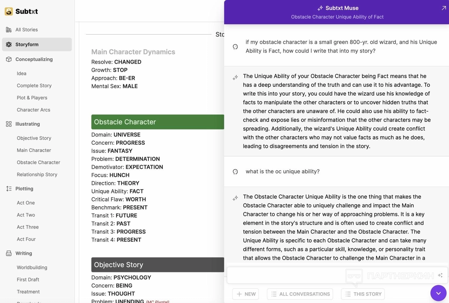 - Subtxt . Само программное обеспечение, выполненное в виде приложения, предлагает пользователю возможность расписать абсолютно все, начиная с биографии персонажа за пять лет до настоящих событий. При этом можно изменять текст в процессе — например, если так или иная часть повествования не придется по вкусу или захочется чью-то сюжетную линию остановить.