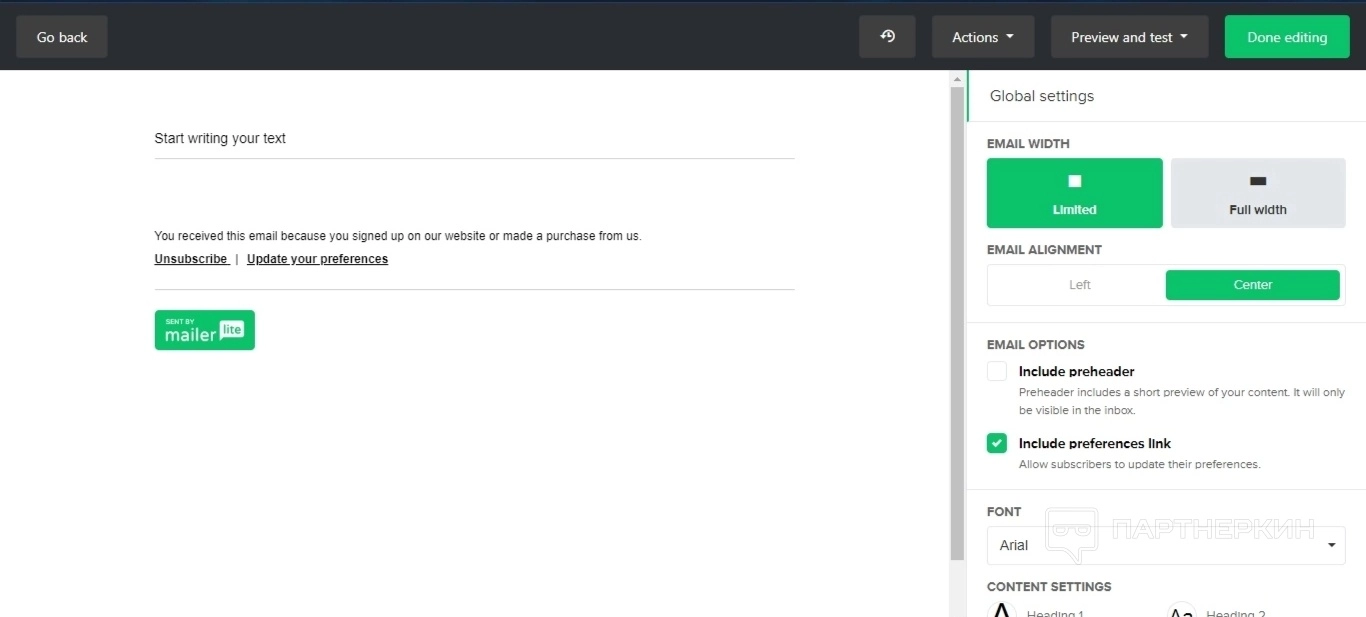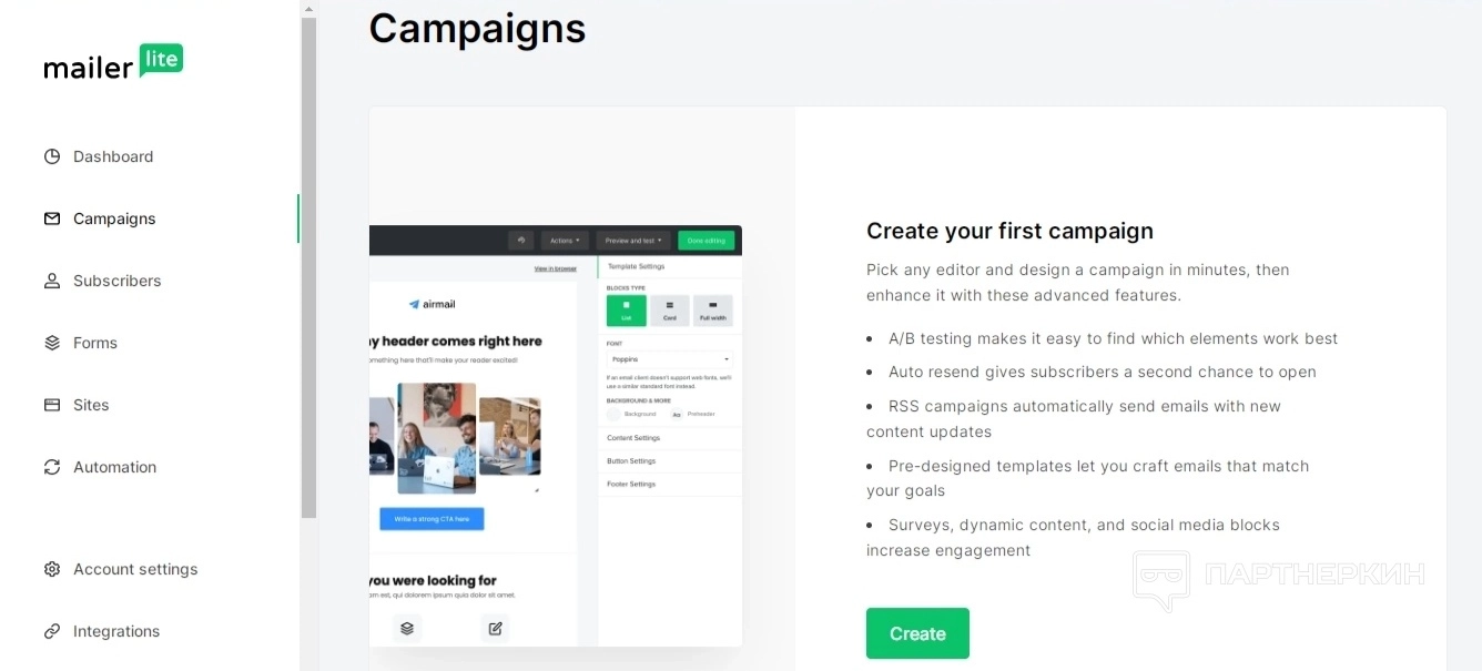 обладает огромным количеством универсальных инструментов, предназначенных для работы с бизнесом на разных его этапах развития. Пользователи могут создавать не только email-рассылки, но и собственный сайт, посадочные страницы, лендинги, формы сбора подписок и многое другое.
