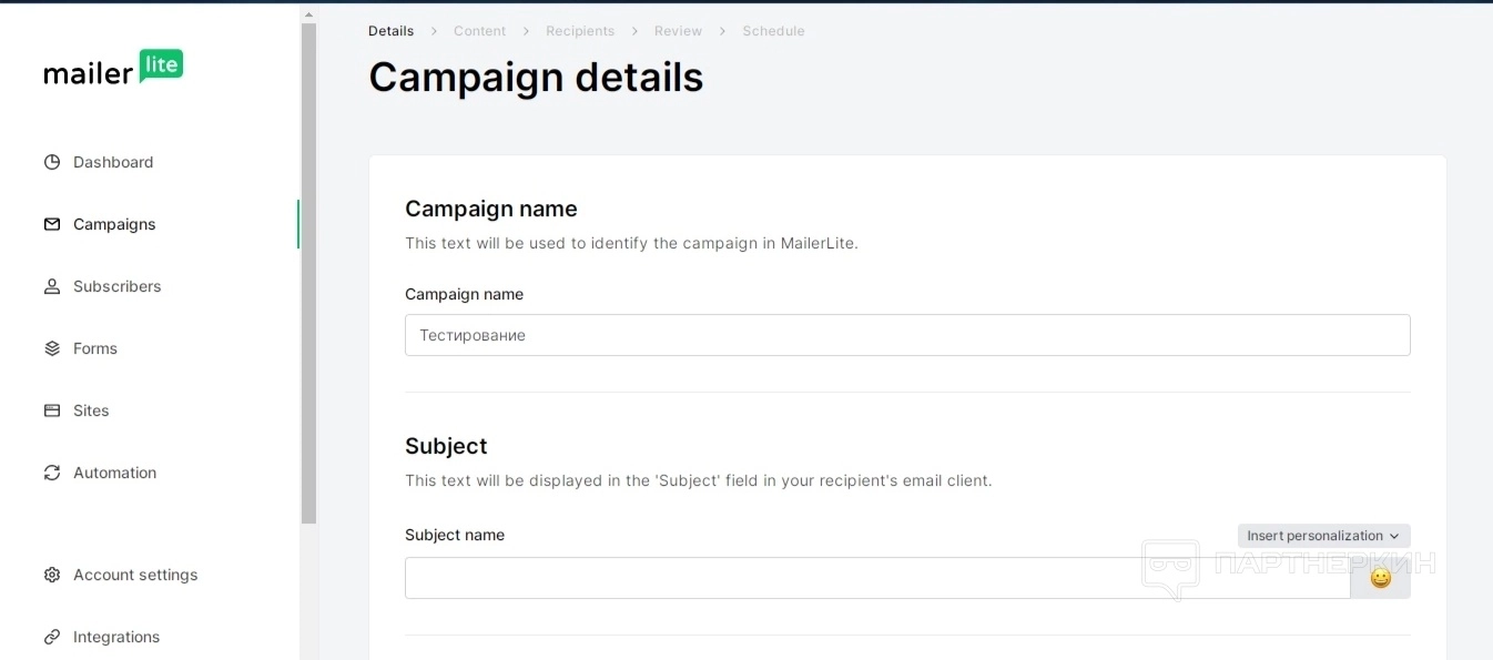 Следующий шаг — указание дополнительных деталей. К ним относятся добавление атрибутов персонализации и других вспомогательных функций, которые помогут в упрощении рассылок.