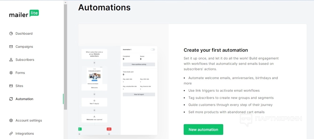 Раздел Автоматизация отвечает за создание автоматических кампаний, зависящих от действий потенциальных клиентов или цели пользователя. Благодаря тщательно продуманной настройке, рассылка будет проводиться в строго заданное время, при выполнении (или нет) определенных условий и без вмешательства самого пользователя (кроме момента отключения рассылки).