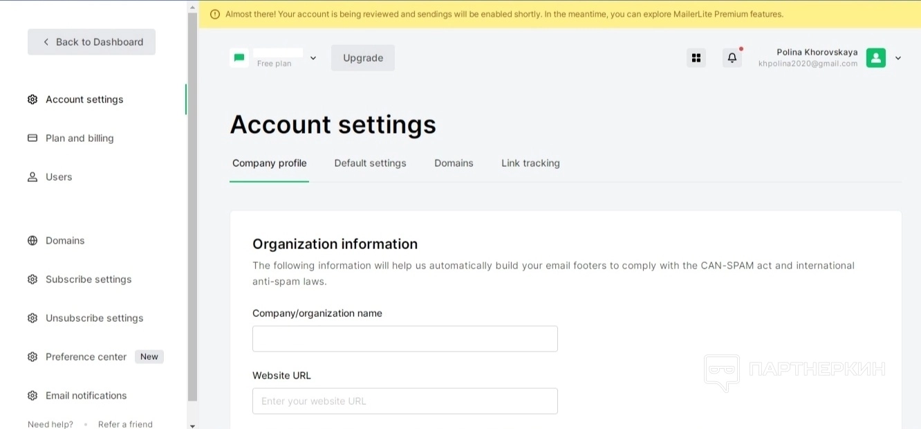 Обширный раздел Настроек позволяет редактировать любую информацию о профиле. Здесь также настраивается личный домен (если есть), добавляются пользователи для доступа к кабинету (если позволяет тариф), редактируются подписи и многое другое.