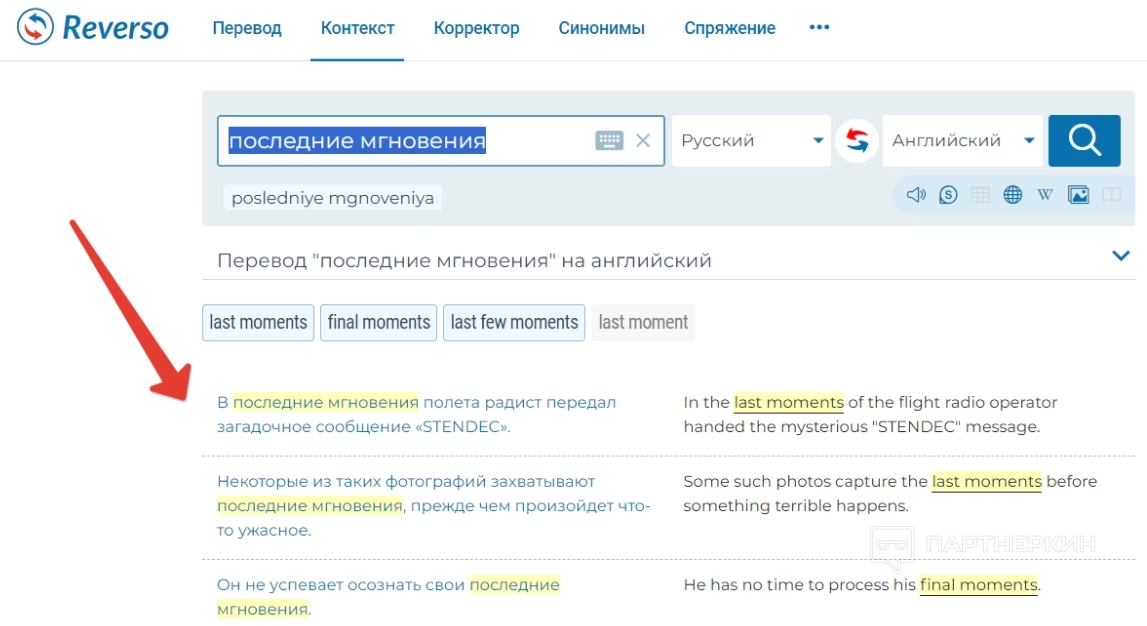 - контекст — с помощью такого инструмента пользователи могут перевести фразу, слово или текст и посмотреть примеры их употребления;