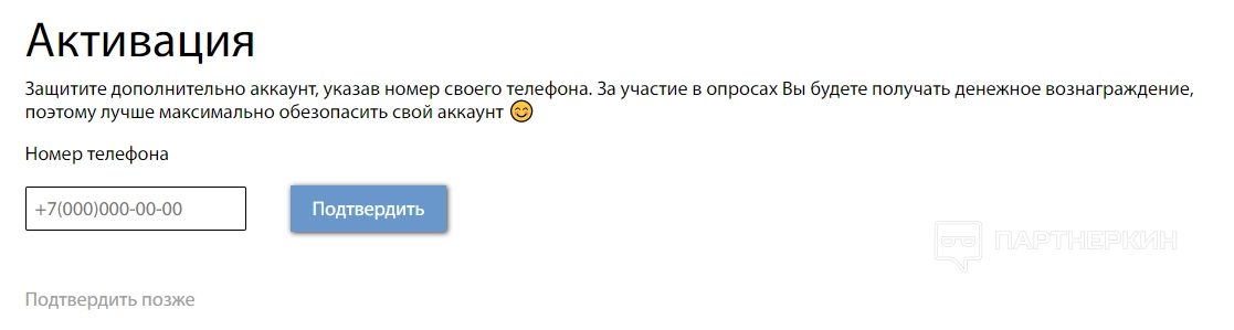 1. После этого на почту придет письмо-подтверждение регистрации. Перейдя по ссылке, пользователь вернется на сайт, где ему предложат подключить дополнительный уровень защиты по номеру телефона. В целом, пункт необязательный, но увеличит лояльность проекта.
