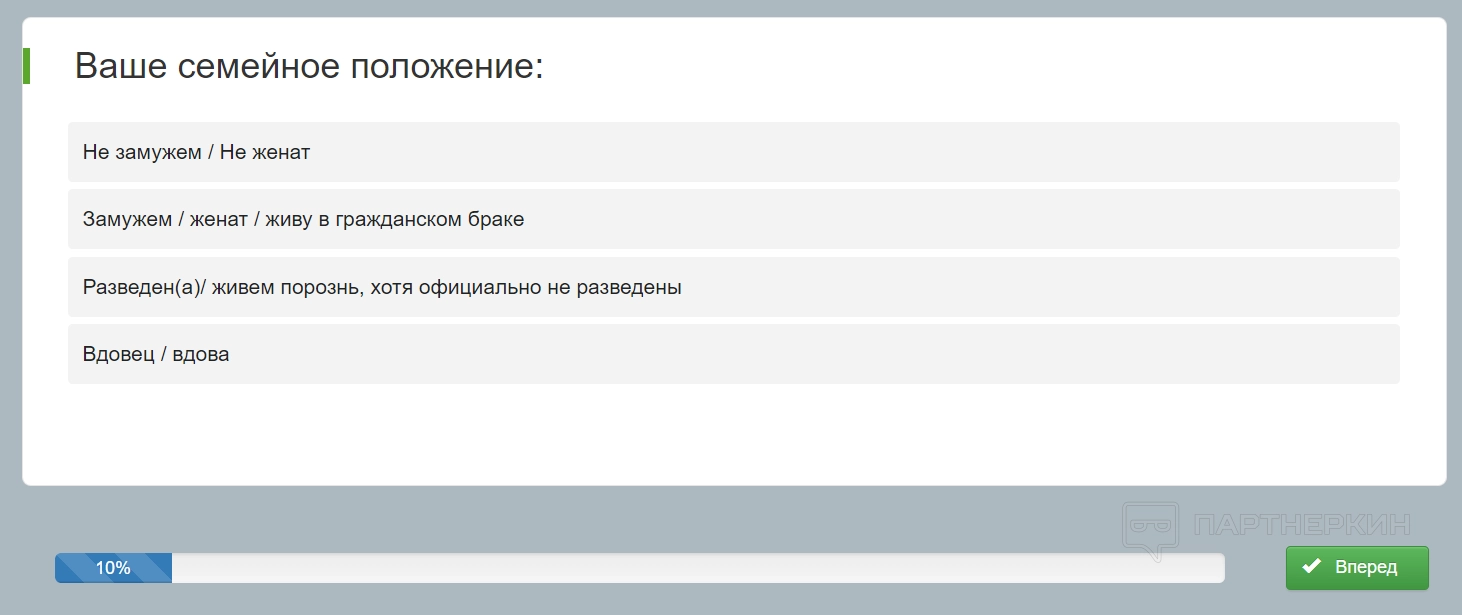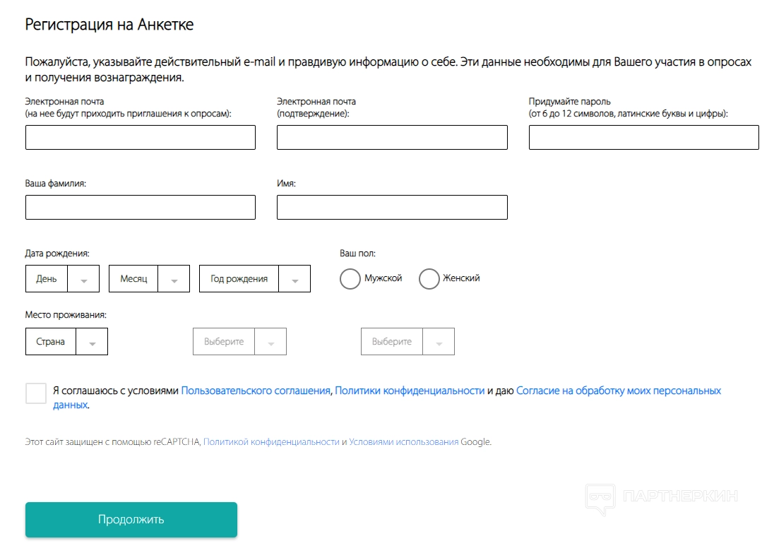 1. Вопросы максимально примитивные — семейное положение, материальные блага, использование медикаментов или наличие автомобиля. Проще говоря, сервис интересуется, под какие опросы подходит пользователь, чтобы потом отослать ему приглашение. Ложную информацию указывать, конечно, нежелательно — позднее опросники могут содержать достаточно узкопрофильные вопросы, на которые без практического опыта ответить достаточно сложно.