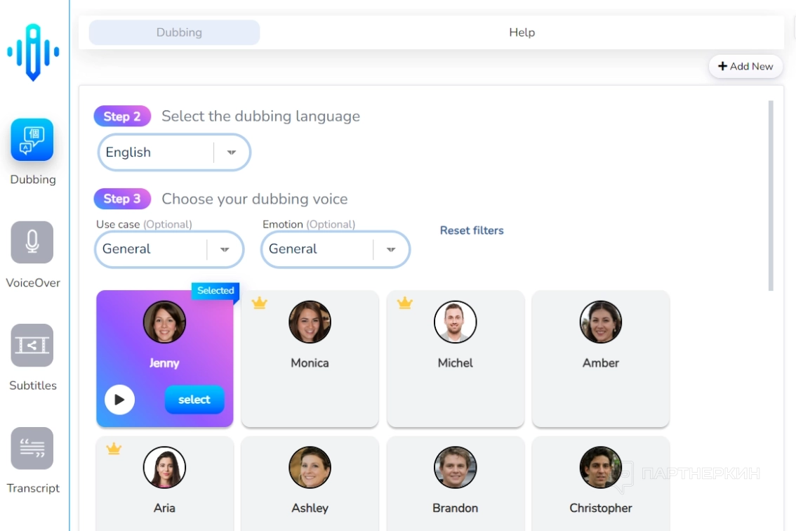 - создание голоса за кадром — можно не переводить уже готовую озвучку видео, а просто создать ее с нуля по указанному пользователем тексту;