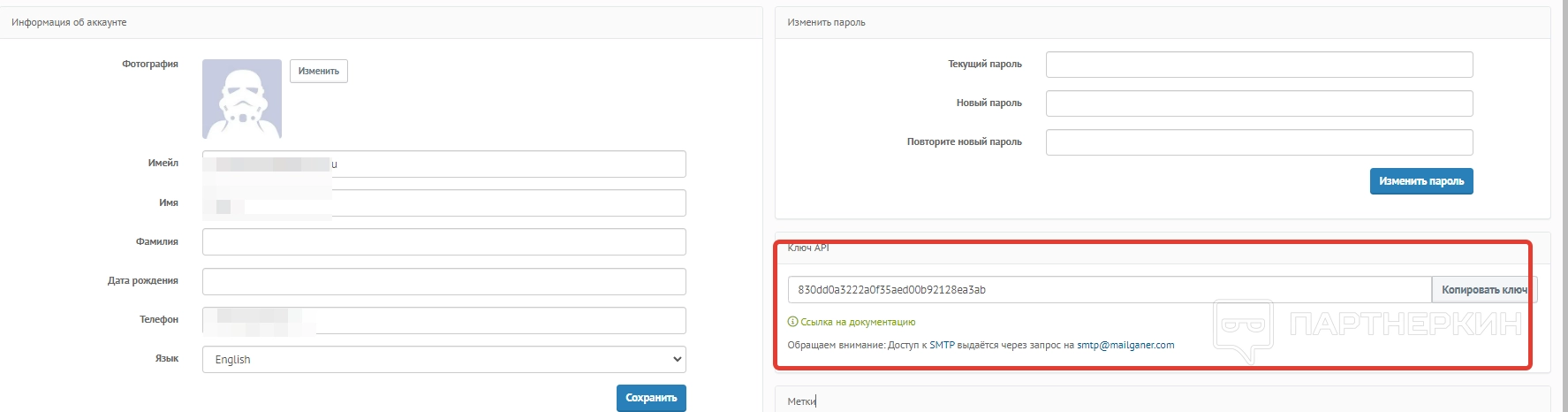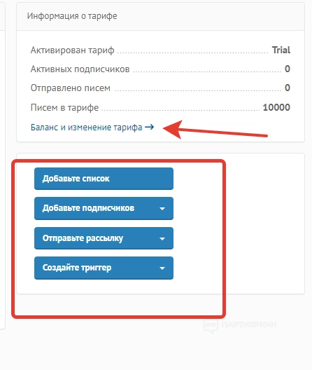 - информационная панель — отображается баланс и тарифный план, рядом есть доступ к настройкам аккаунта;