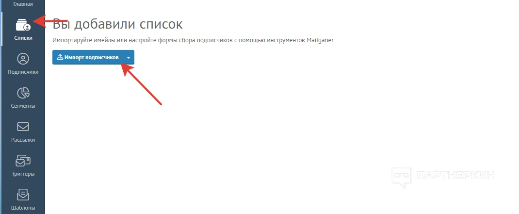 - Импортировать подписчиков, кликнув на соответствующую кнопку.