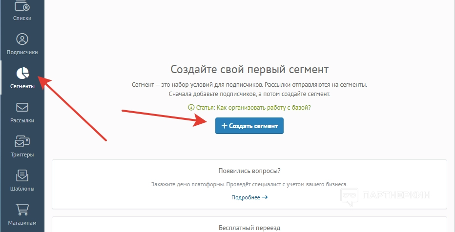 В этом разделе создаются сегменты — наборы условий для подписчиков, в соответствии с которыми и будет осуществляться рассылка. Прежде чем создать первый сегмент, необходимо добавить первых подписчиков. Если же подписчики уже есть, можно приступать к настройке сегмента.