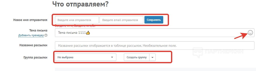 - Прописываем тему письма. При необходимости можно вставить эмоджи.