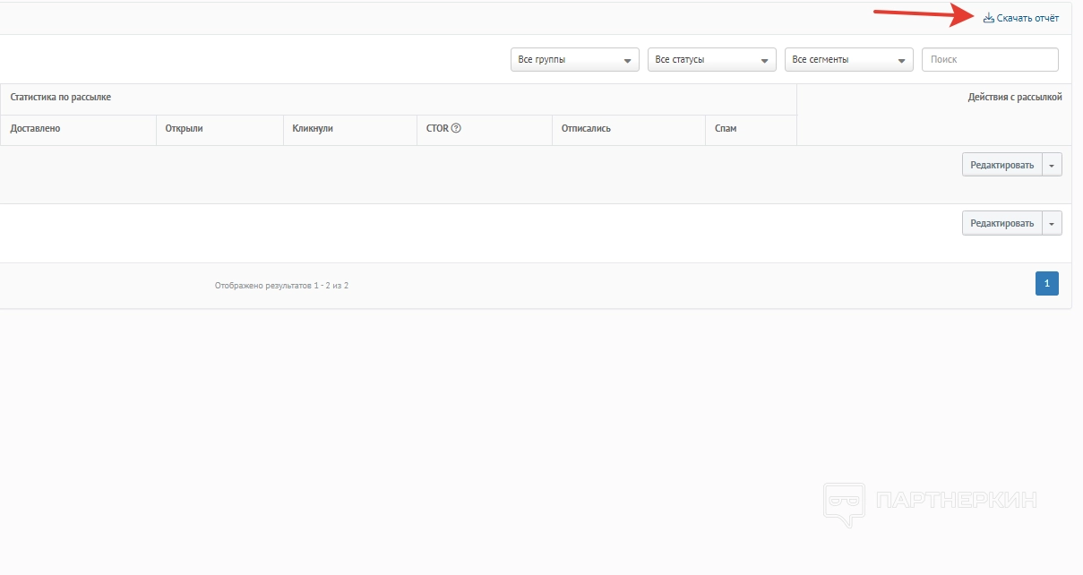 Созданная рассылка автоматически отобразится в специальной таблице в разделе «Рассылки». Стоит обратить внимание на верхнюю часть таблицы, где будет отображаться статистика. Здесь можно найти следующие параметры:
