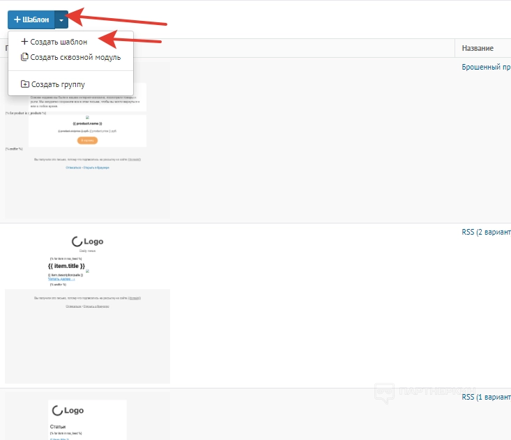 - шаблоны — в этом разделе хранятся шаблоны писем для рассылки;