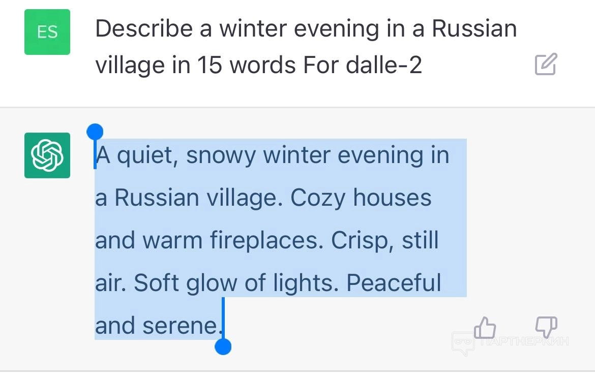 Нейросеть может формулировать описание — промпт для других нейросетей, например Midjourney или DALL-E. Сервисы, которые рисуют картинки на основе текстовых описаний, нуждаются в максимально точной вводной информации. Чем она лучше проработана — тем более качественное изображение и тем больше оно соответствует пожеланию пользователю.