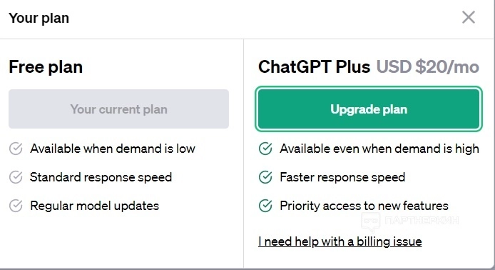 Также в феврале 2023 были запущены версии ChatGPT Pro и ChatGPT Plus с платной подпиской. Эти тарифы позволяют пользователям иметь доступ в систему даже в часы пик, предоставлять ответы быстрее, получать доступ к модулю LLM OpenAI, GPT— 4. Премиум-услуги стоят $20 в месяц.