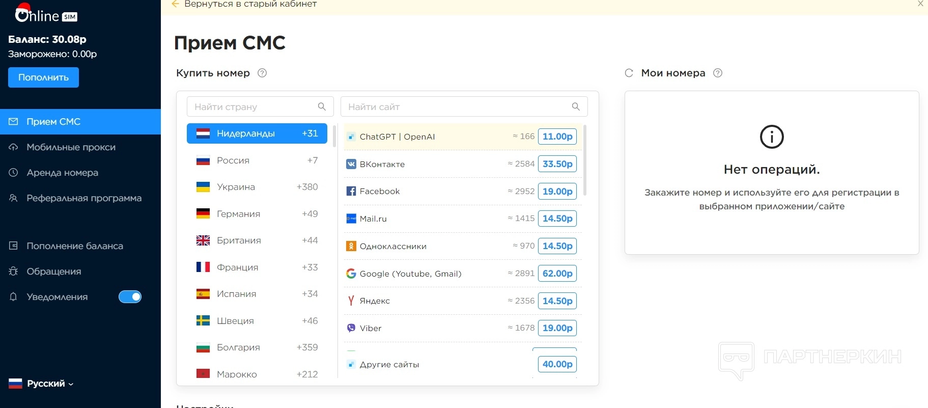 виртуальный номер — можно приобрести в одном из сервисов виртуальных номеров, например Onlinesim, важно, чтобы номер совпадал с гео VPN.