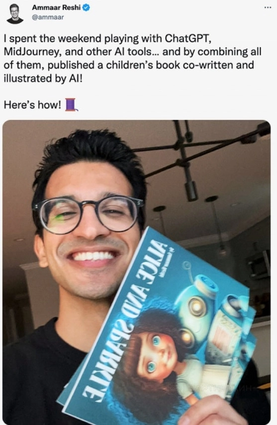 дизайнер Аммар Реши написал художественную книгу про приключения Алисы «Alice and Sparkle», которая сейчас успешно продается на Amazon за 9 евро. Это не единственный пример монетизации творческих хобби с помощью нейросети.