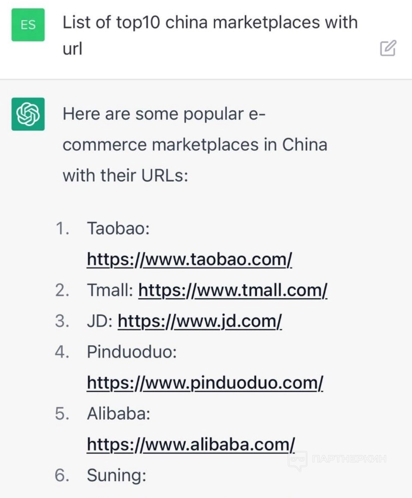 Составление списков и чек-листов. Например, список маркетплейсов Китая с ссылками на их сайты для бизнеса e-Commerce.