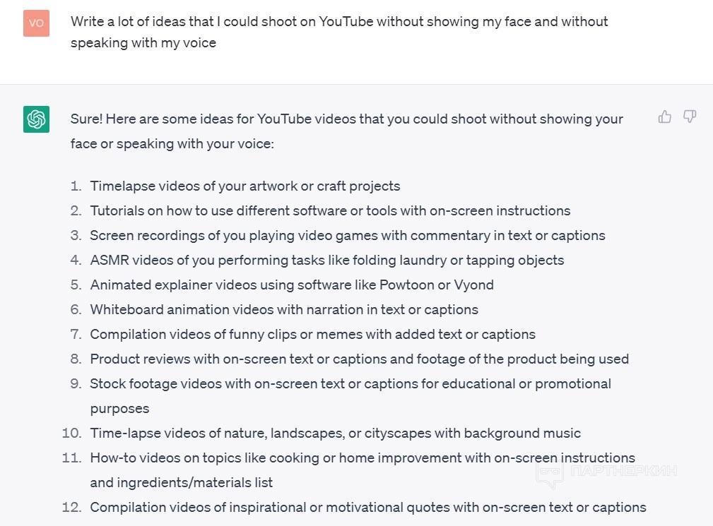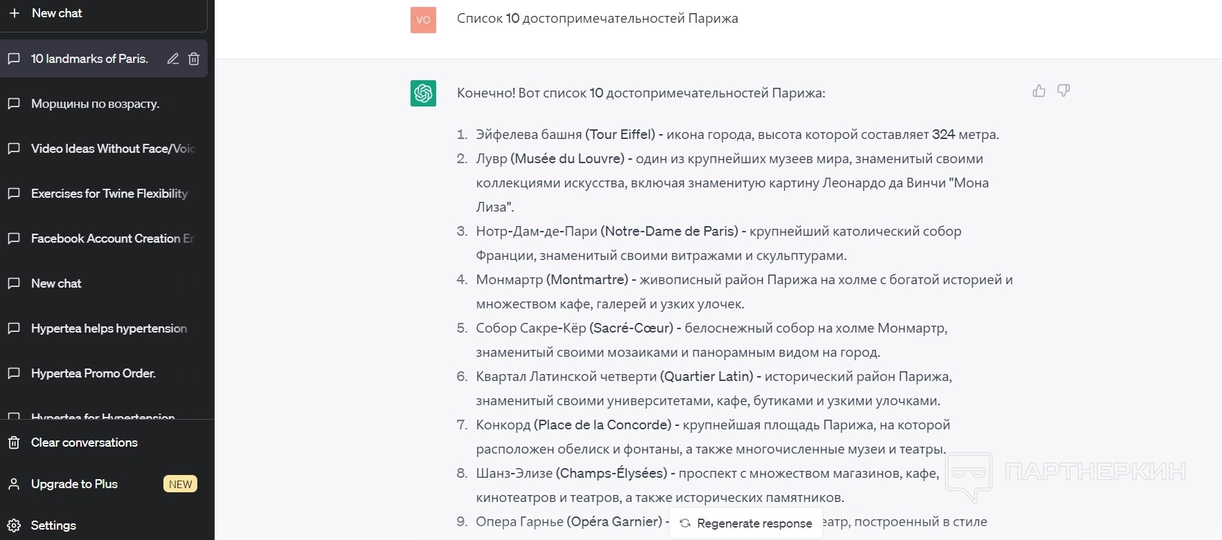 писать определенное количество символов — например, пост для соцсети длиной до 1 000 знаков, либо предоставить 5 идей для бизнеса, либо написать список из 10 достопримечательностей Парижа. То есть ChatGPT можно давать техническое задание похожим образом, как если бы это был человек-копирайтер.