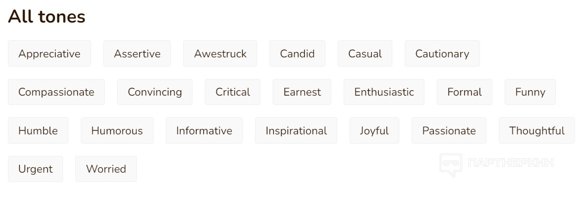 - Можно получить результат с разными эмоциональными результатами Tone-of-Voice: доступно более 20 вариантов тона.