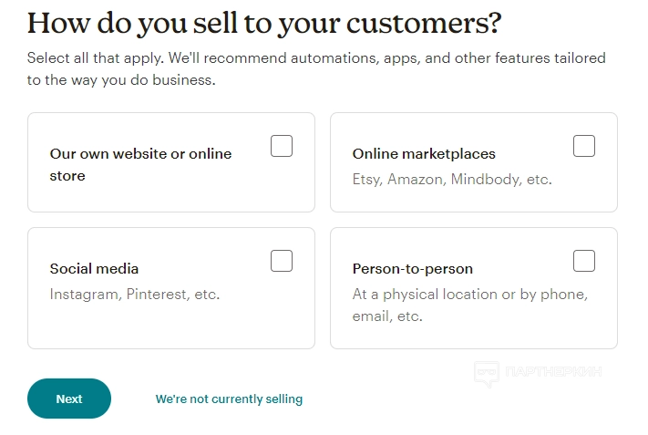 Сервис Mailchimp уточнит, какими способами пользователь продает товар клиентам: