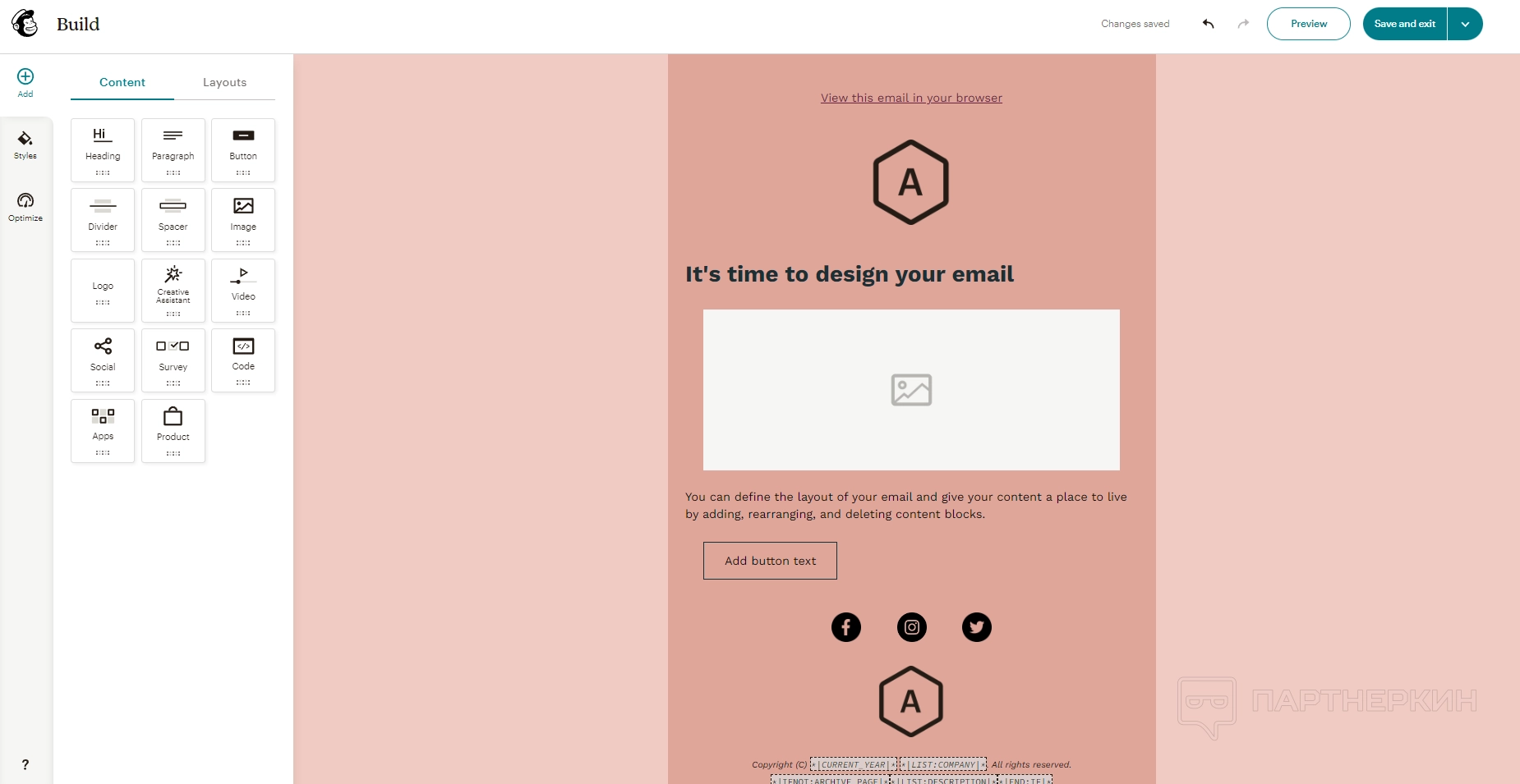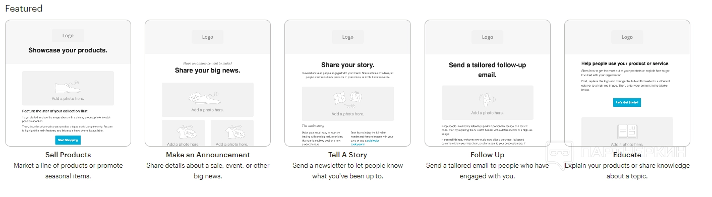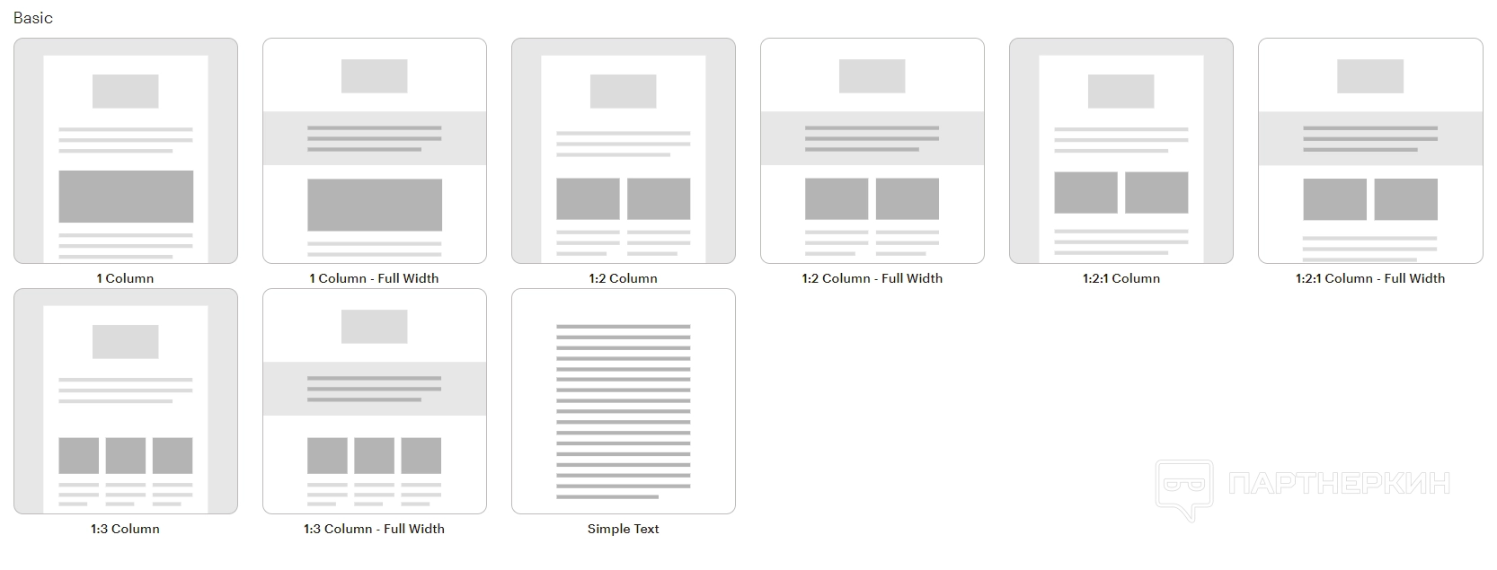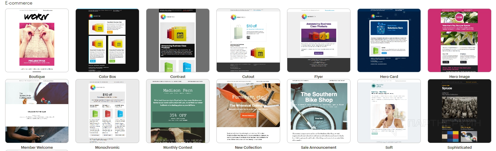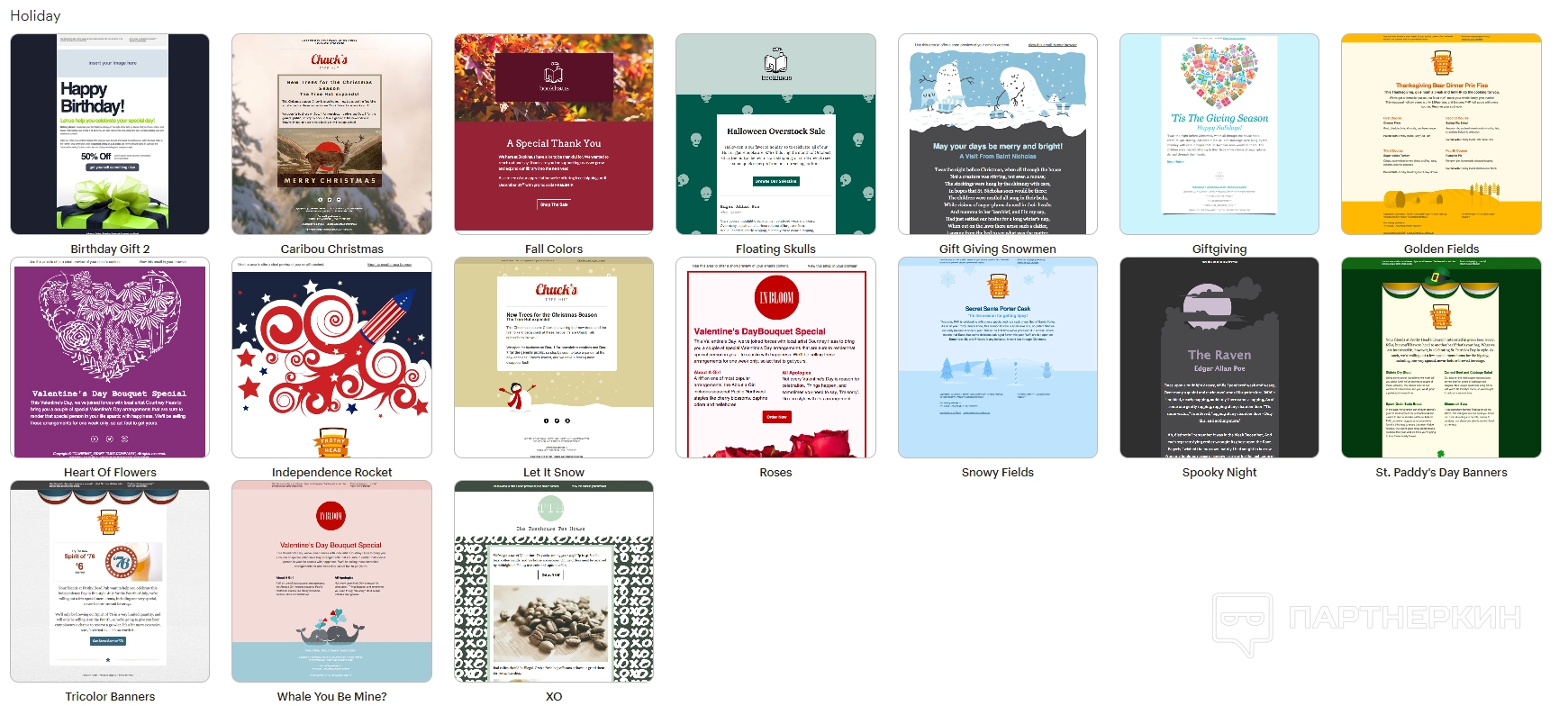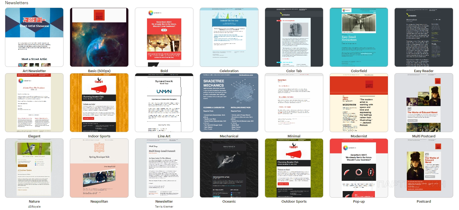 - Большой выбор шаблонов. У сервиса множество готовых шаблонов электронных писем, которые можно настроить под свои нужды. Есть возможность создания собственного и уникального дизайна.