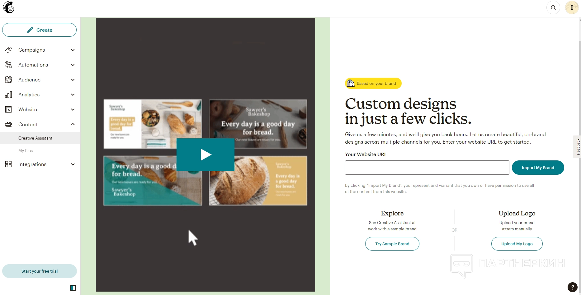 На платформе Mailchimp есть возможность разработать индивидуальный дизайн всего за несколько кликов. Площадка может создать для пользователя или компании красивый и уникальный дизайн. Чтобы это сделать, необходимо ввести URL сайта и подождать около 5 минут.