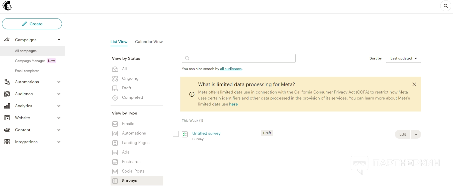 - Создание новой кампании. Сервис Mailchimp предоставляет различные инструменты и шаблоны, которые помогут создать эффективные и привлекательные письма для аудитории.