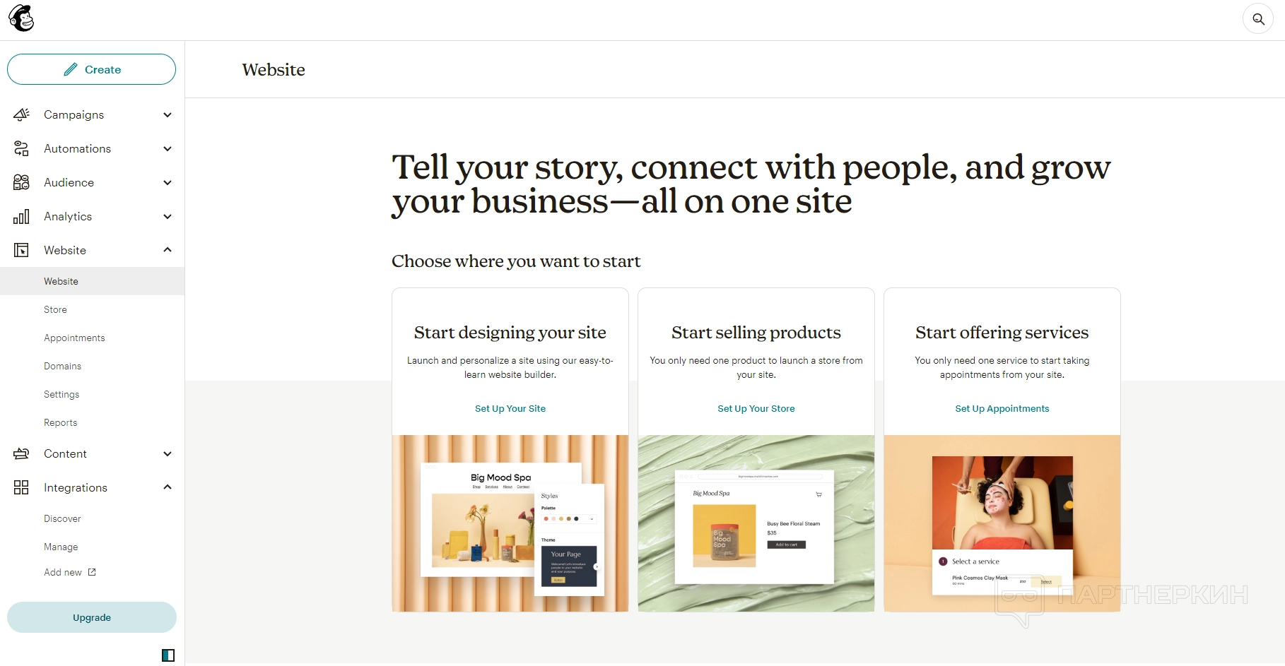 Разработчики платформы Mailchimp утверждают, что на площадке пользователь может создать полноценный сайт (на самом деле — простой лендинг). Рассмотрим этот процесс подробнее.