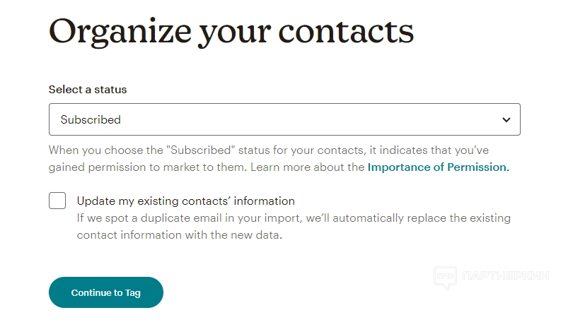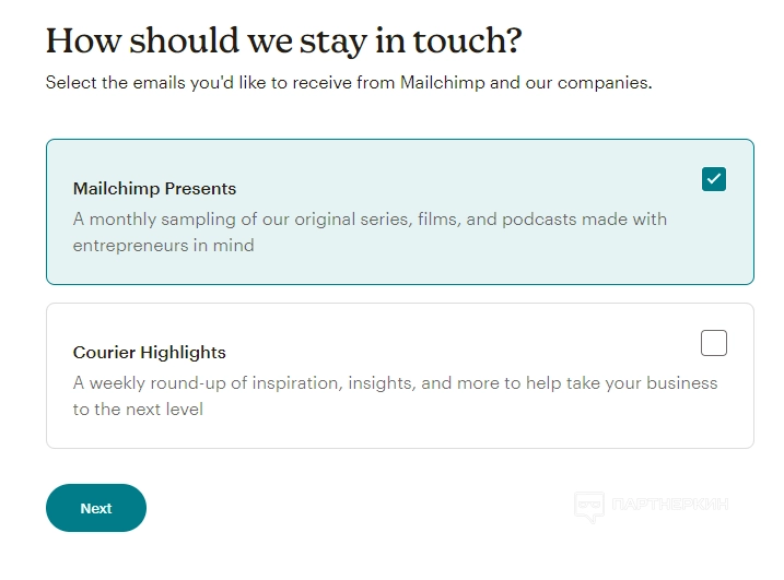 Если пользователь хочет получать больше сообщений от Mailchimp, можно активировать две опции: