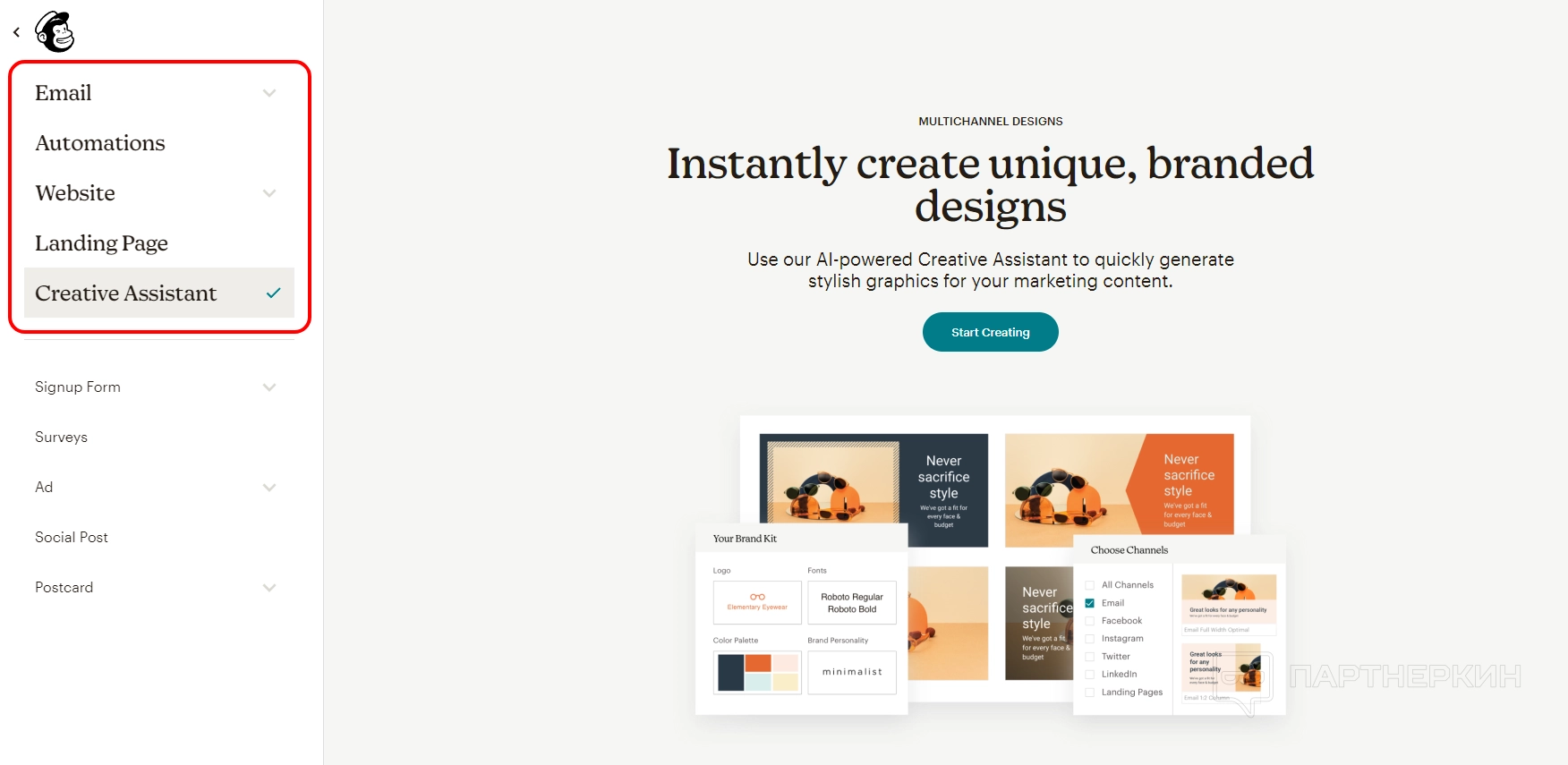 Creative Assistant. Клиенты площадки Mailchimp могут использовать в работе искусственный интеллект для быстрого создания стильной графики.