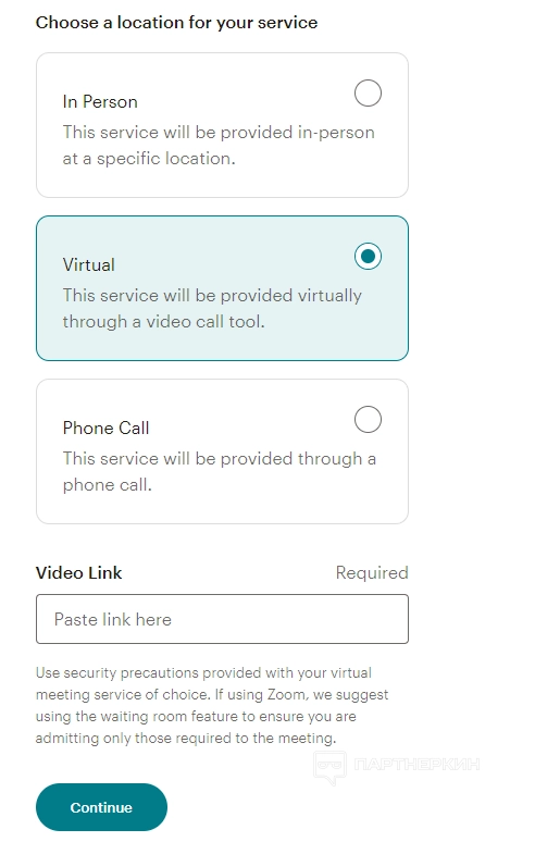 - Виртуально. Услуга будет предоставляться виртуально по видеозвонку.
