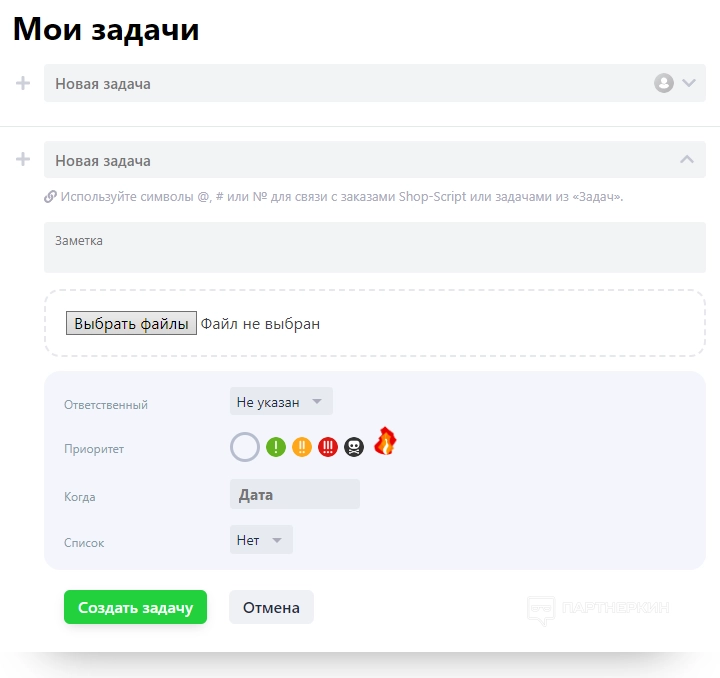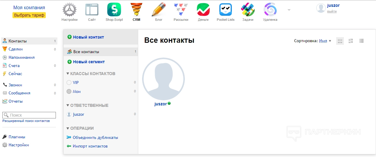 Встроенная и мощная система для учета заказов, их сортировки по различным признакам, ведения клиентской базы и мониторинга ответственных за отдельных продажи менеджеров. Есть возможность импорта контактов. В разделе находится несколько вкладок: