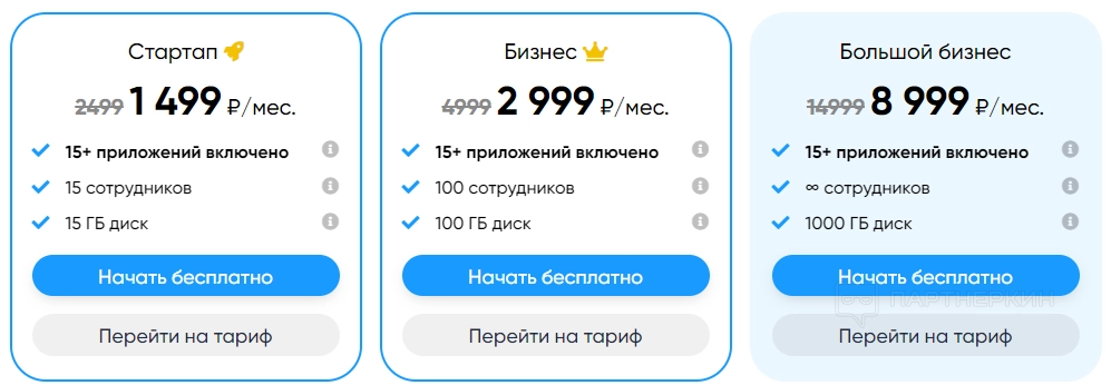 На тарифных планах Старт, Про, Маркетплейсы и Премиум есть общие бонусы. Подробнее об этом расскажем в таблице.