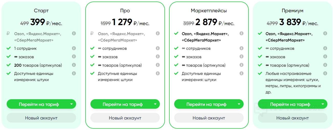 | Бонус | Старт | Про | Маркетплейсы | Премиум |