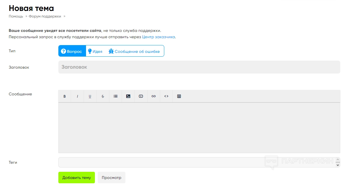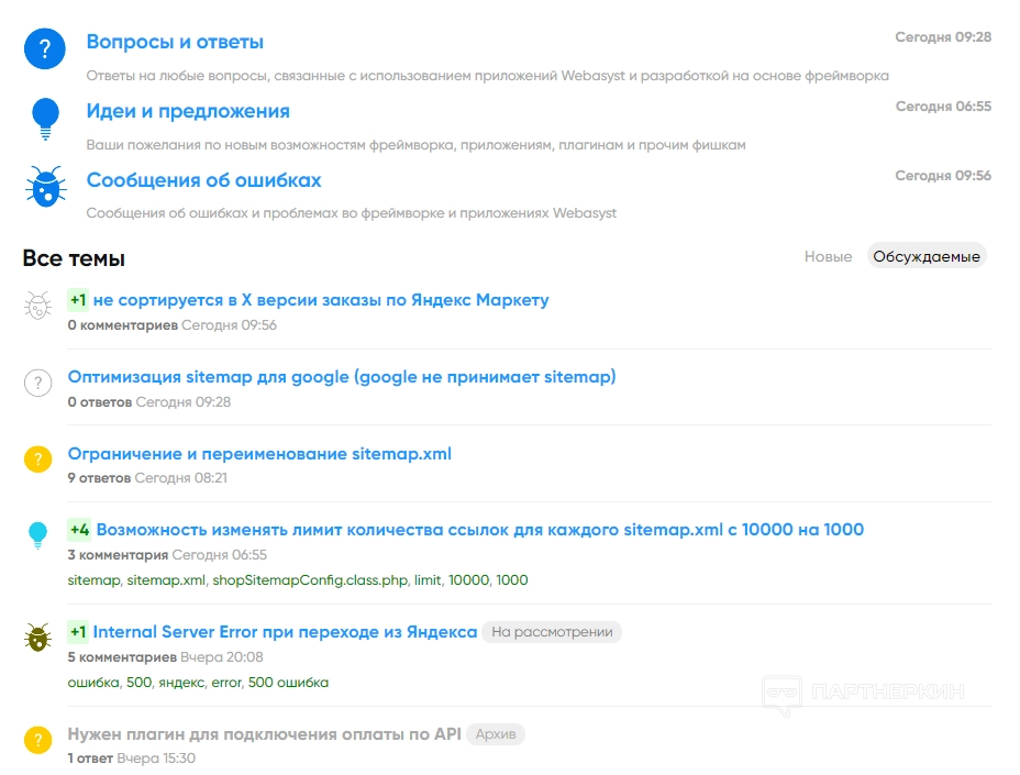 На форуме поддержки пользователи могут задать интересующие вопросы, предложить идею или сообщить об ошибках.
