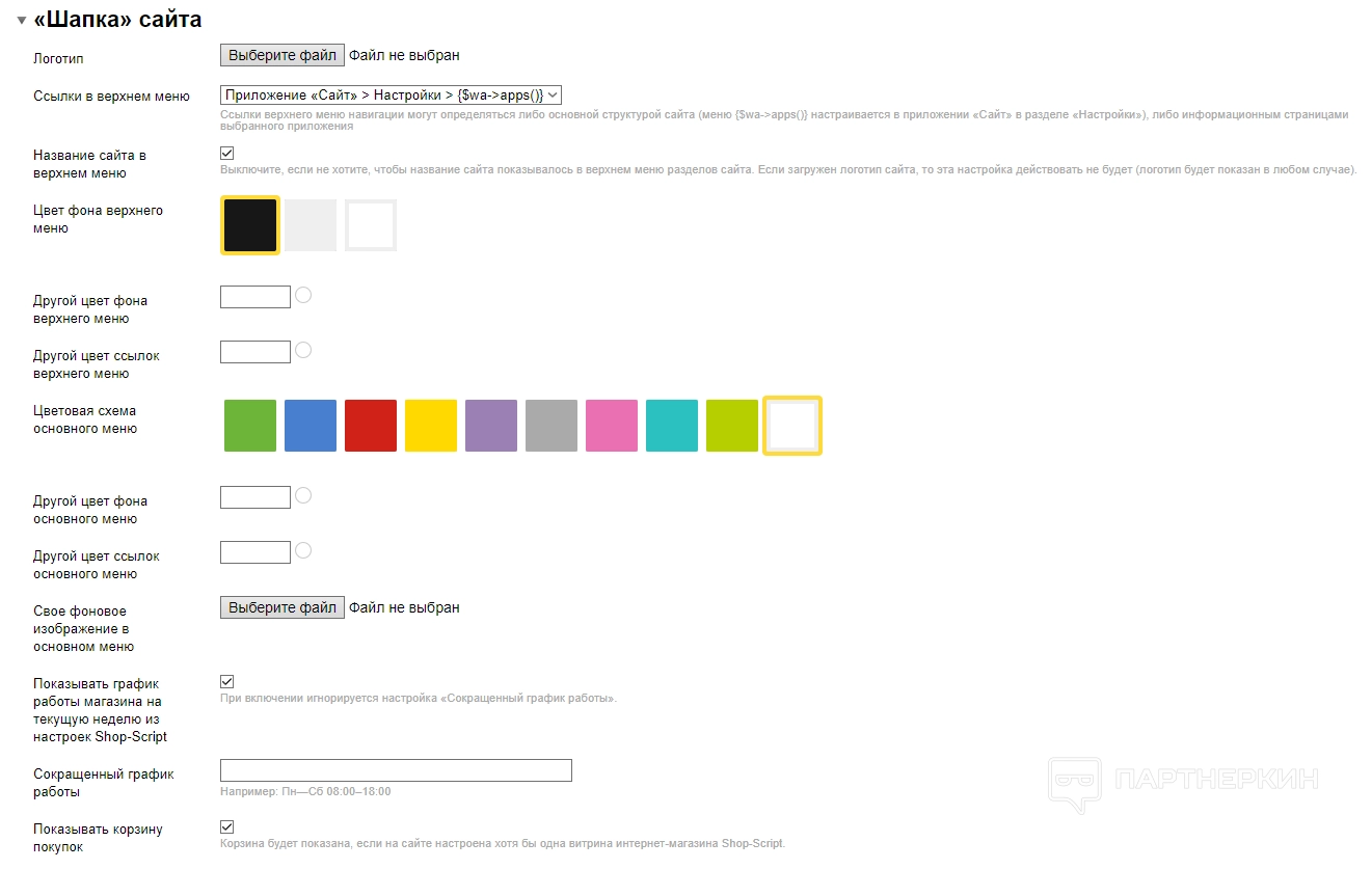 - показывать корзину покупок (корзина будет показана, если на сайте настроена хотя бы одна витрина интернет-магазина Shop-Script).