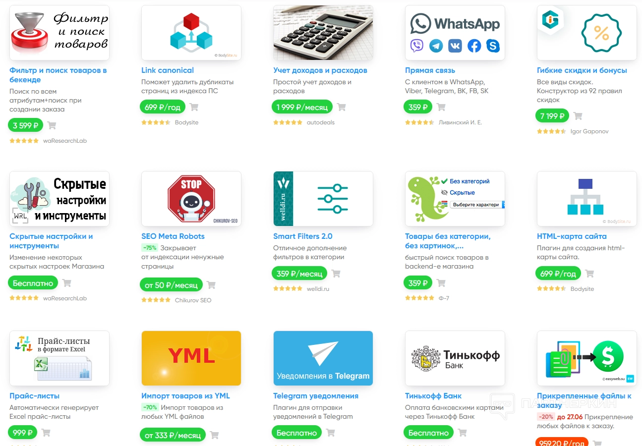 В Shop-Script есть много современных функций. Еще больше возможностей легко добавить из встроенного каталога дополнений.